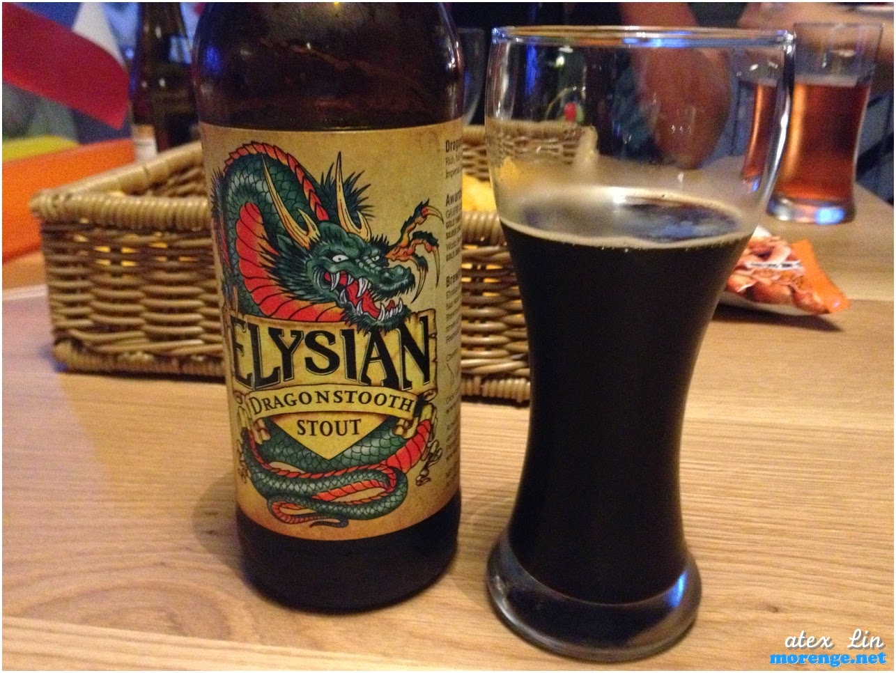 因為老大賴在床上沒下來跟我看轉播,所以用了她的卷繼續第二杯,這瓶是美國來的,帶著咖啡味,有著7%多的酒精濃度,喝下的第一口感覺是.....我在灌espresso的氣泡水嗎?!